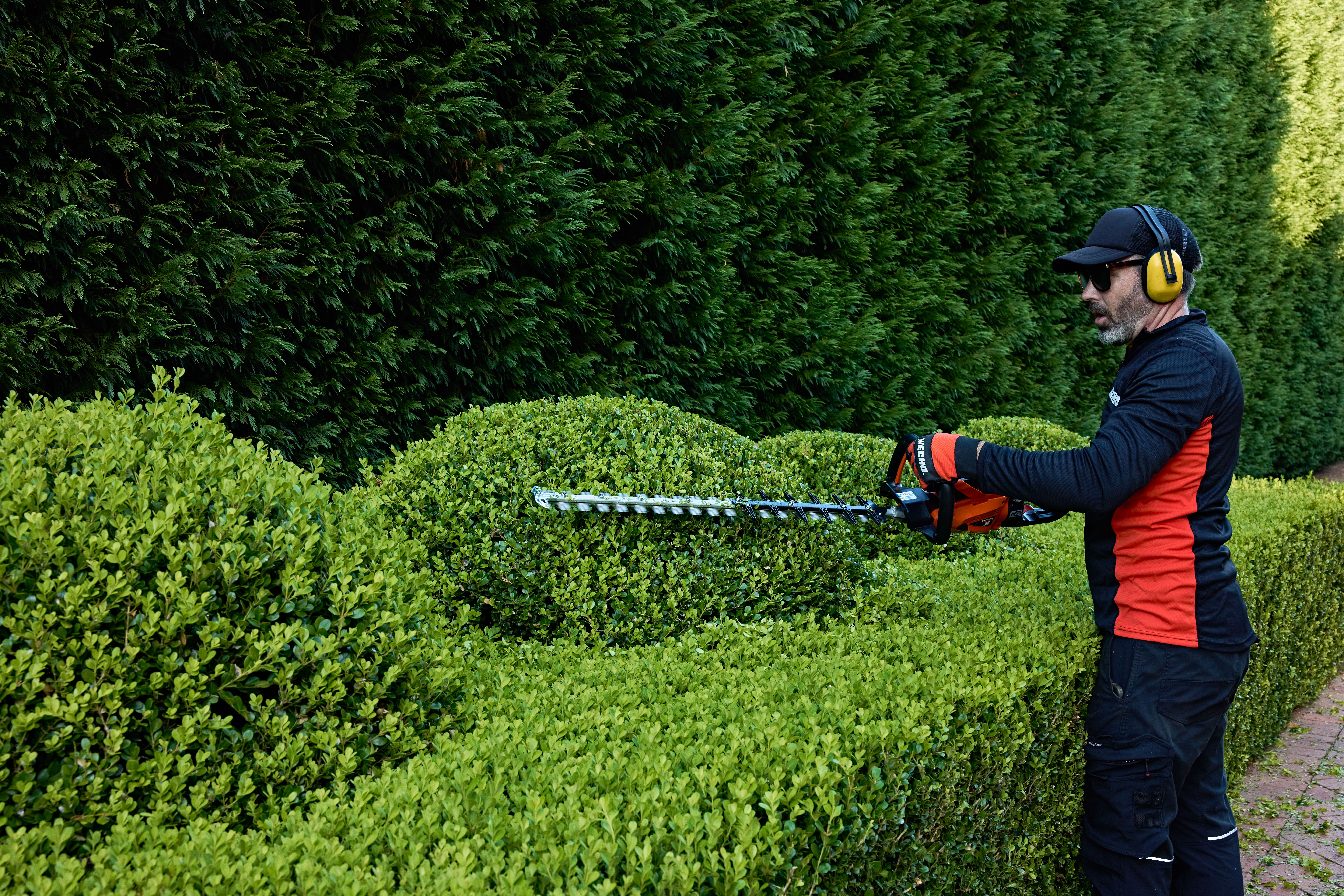 Vergewissern Sie sich vor dem Schneiden, dass keine Hindernisse oder Stolperfallen im Arbeitsbereich vorhanden sind. Und wenn es auch schwer fällt, die Bewunderer Ihrer Arbeit abzuweisen: Sorgen Sie im Vorfeld Ihrer Heckenpflege darauf, dass während der Tätigkeit keine Kinder in der Nähe sind und sich helfende Personen nicht im Schnittbereich der Heckenschere aufhalten.