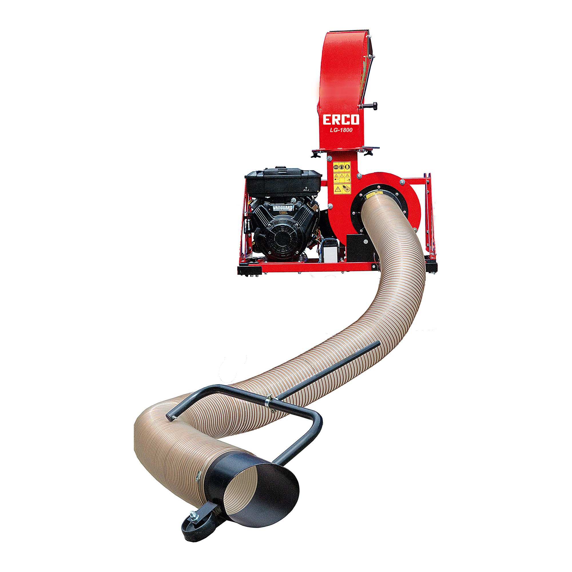 Mit der Bordwand verbunden, füllt der LG-1800 selbst größte Ladeflächen in kurzer Zeit. Kräfteschonendes Arbeiten durch Unterstützung eines Schlauchauflegearms. Kompletter Auswurfkamin um 320° schwenkbar. Saugnase wird auf Stützrad geführt.
