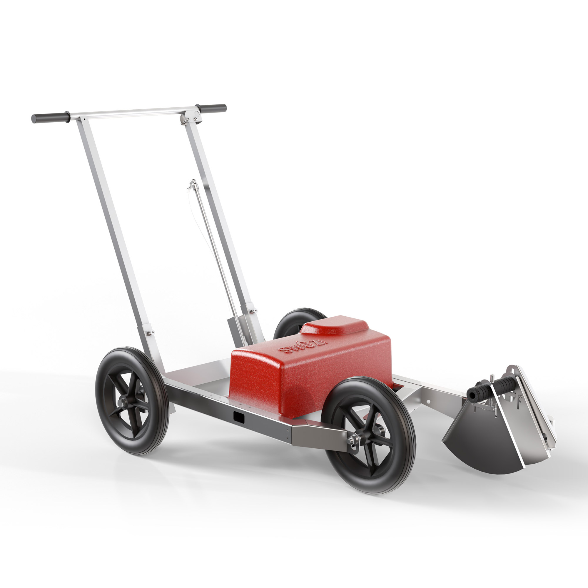 Robuster, manueller Markierwagen mit Pumpsystem und Spritzdüse zum Ausbringen von Farbe. RTK-GPS Arm kann einfach nachgerüstet werden.