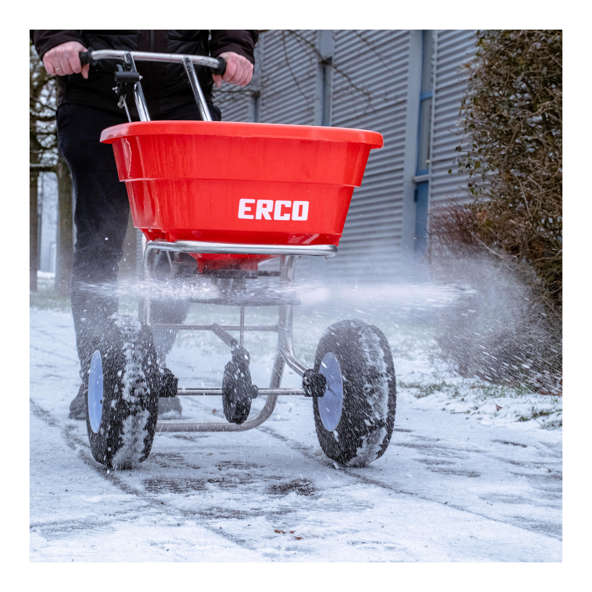 Der ERCO SP-240ES Schleuderstreuer überzeugt durch minimalen Wartungsaufwand. Der Edelstahlrahmen benötigt keine spezielle Pflege und widersteht Korrosion dauerhaft. Nach dem Einsatz – besonders nach Salzstreuung – spülst du den Trichter einfach mit Wasser aus.