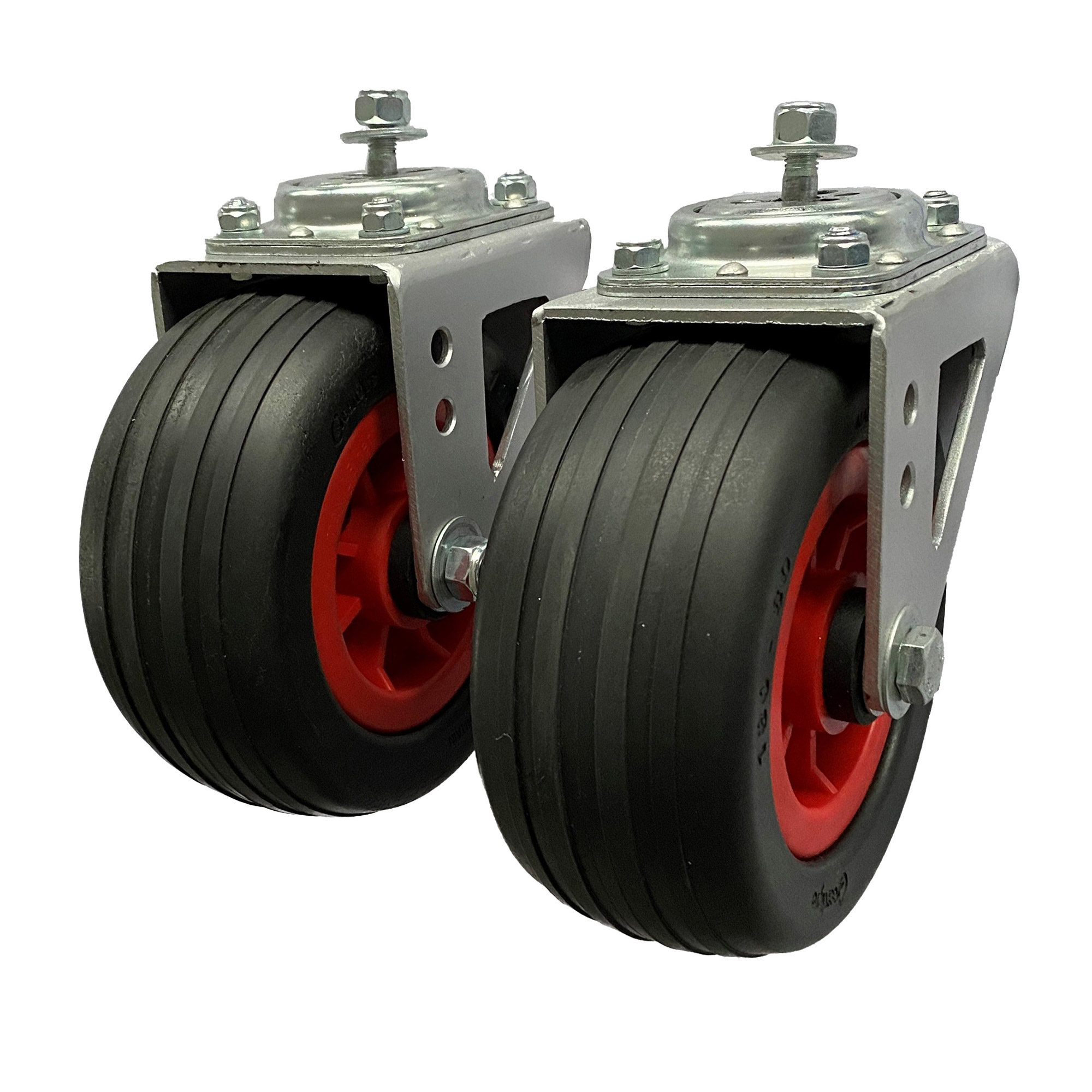 Mithilfe der Rasenbereifung lässt sich der Laub- und Abfallsauger auch auf unbefestigten Flächen wie Rasen perfekt manövrieren. Set bestehend aus zwei Vorderrädern.